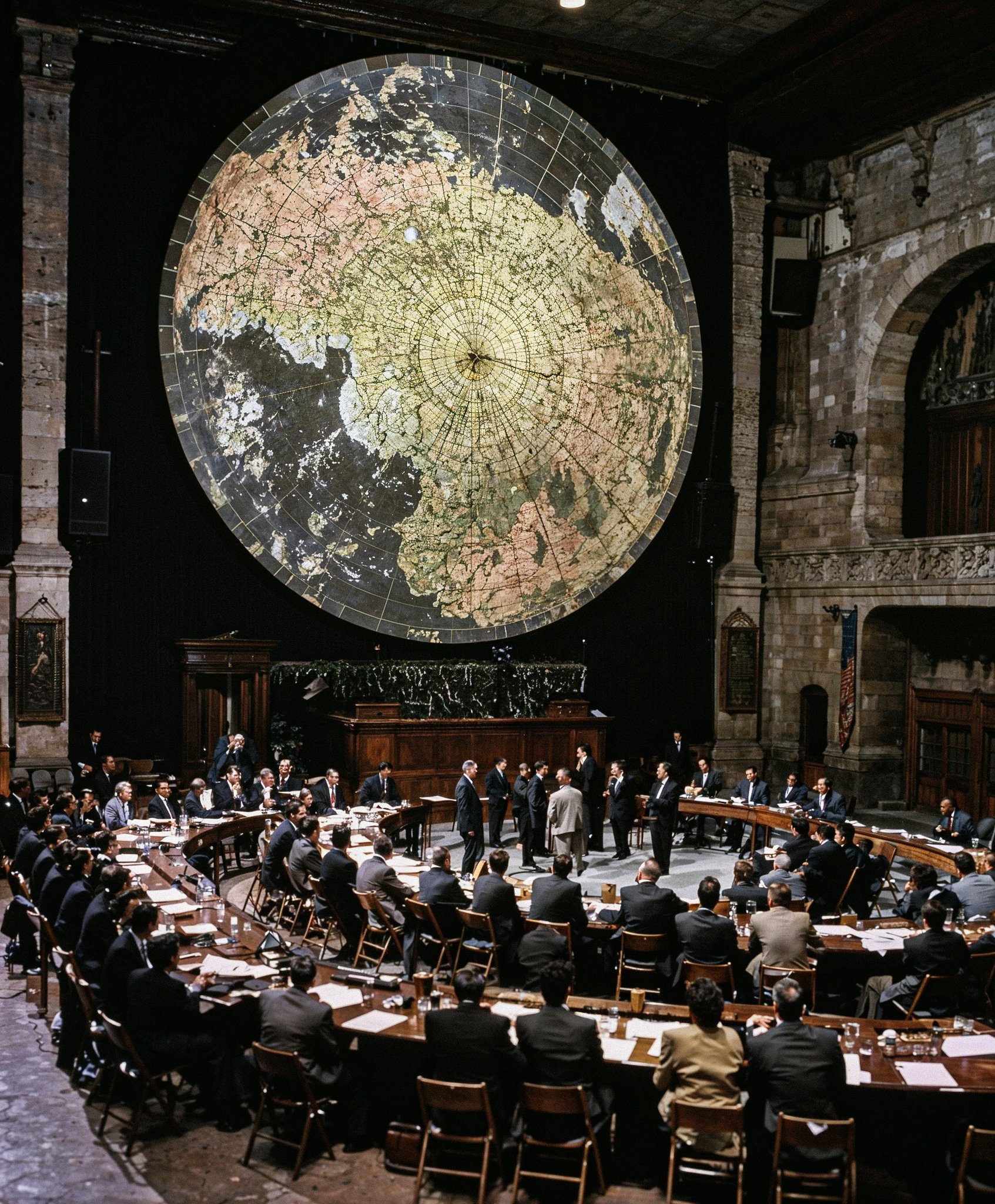 En rentrant, l'Ardien découvrit qu'il était parmi les derniers arrivés. Le milliardaire ne voulut pas trop attirer l'attention et s'installa rapidement sur le fauteuil qui lui était dédié dans la grande salle. Cette dernière ressemblait d'ailleurs à s'y méprendre, étrangement, à un tribunal. Il regarde derrière l'estrade ou le Premier Ministre allait sûrement s'installer et admira sur le mur l'énorme carte de toute l'Eurysie.