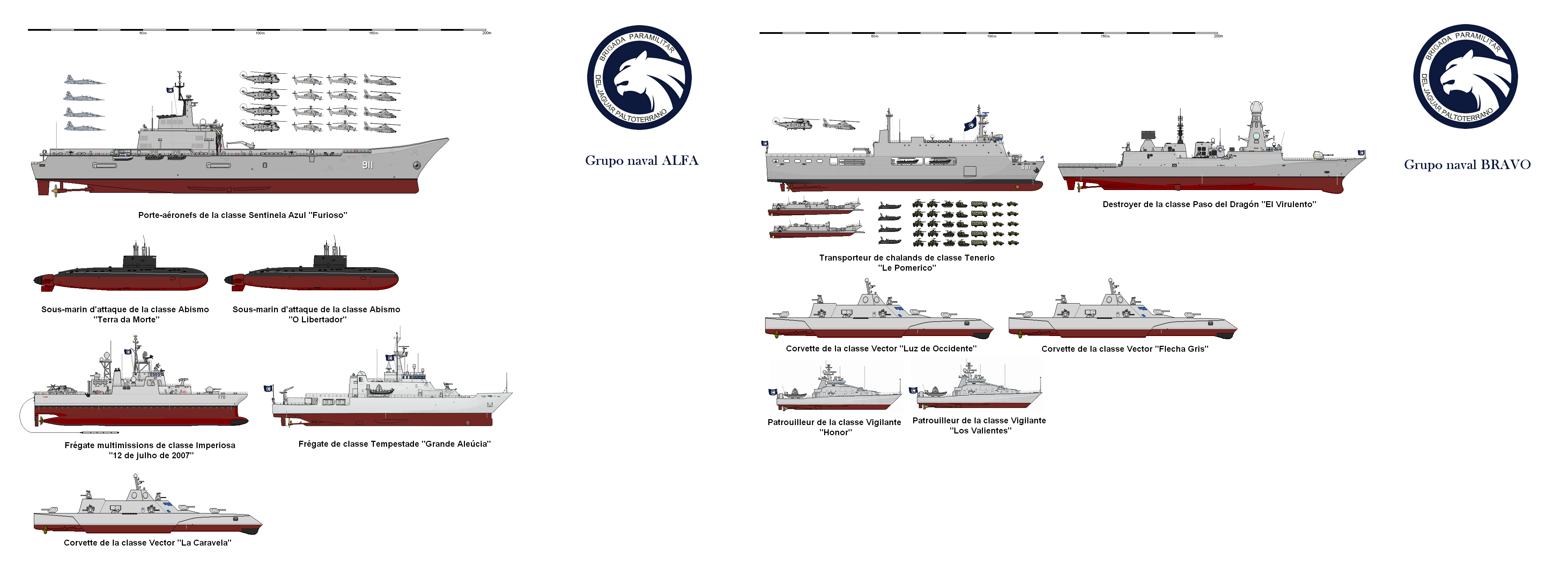 Du côté des acquéreurs, à l'instar d'Ilias Nogaro, amiral de la marina paramilitar, l'instant est également solennel autour de la réception du Furioso, nouveau navire amiral de la flotte de guerre du Jaguar Paltoterran, elle-même subdivisée en deux groupes navals. L'organisation paramilitaire étant l'allié de notre république péninsulaire, le gouvernement Sapateiro et le commandement du Jaguar Paltoterran font là finalement une affaire davantage politique que commerciale, considérant l'investissement sécuritaire que représente la fourniture d'une flotte de guerre sous l'égide du Jaguar Paltoterran et de sa marina paramilitar. "On ne peut se mettre au service de la nation sur un bâtiment pareil et refuser d'y laisser une part de soi. La marine pontarbelloise a servi avec les honneurs sur ce bâtiment dont nous entendons nous montrer digne. Mais un bâtiment de guerre n'est pas un mausolée, c'est au risque d'enfoncer une porte ouverte : un outil de combat ! Le voir continuer ainsi sa route sous nos couleurs du Jaguar Paltoterran est un signe qui doit développer la fierté pontarbelloise. Un signe que ce bâtiment a fait ses preuves, bien entretenu, bien respecté..." nous confie l'amiral Ilias Nogaro de la marina paramilitar du Jaguar Paltoterran. "Le Furioso part, oui. Mais il ne part pas sur le dos ! De grands desseins le maintiennent en mer."